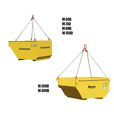 El modelo M-D es una cubeta diseñada específicamente para el levantamiento y transporte de agregados y desechos de construcción. Esta cubeta cuenta con cuatro puntos de levantamiento, lo que la hace extremadamente estable durante las operaciones de elevación y manipulación. También está diseñada para ser movida con manipuladores telescópicos o carretillas elevadoras.