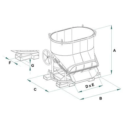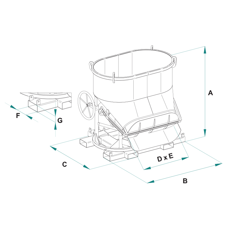 BOT-GAVCubo ovalado para hormigón con descarga lateral y gran apertura de volante