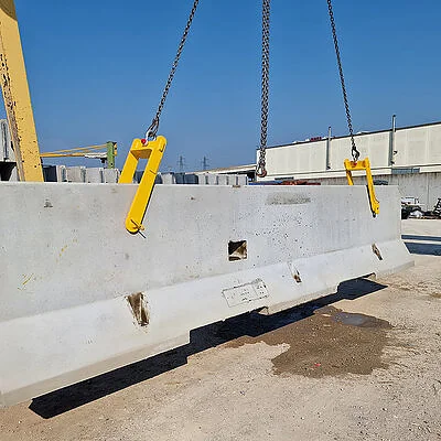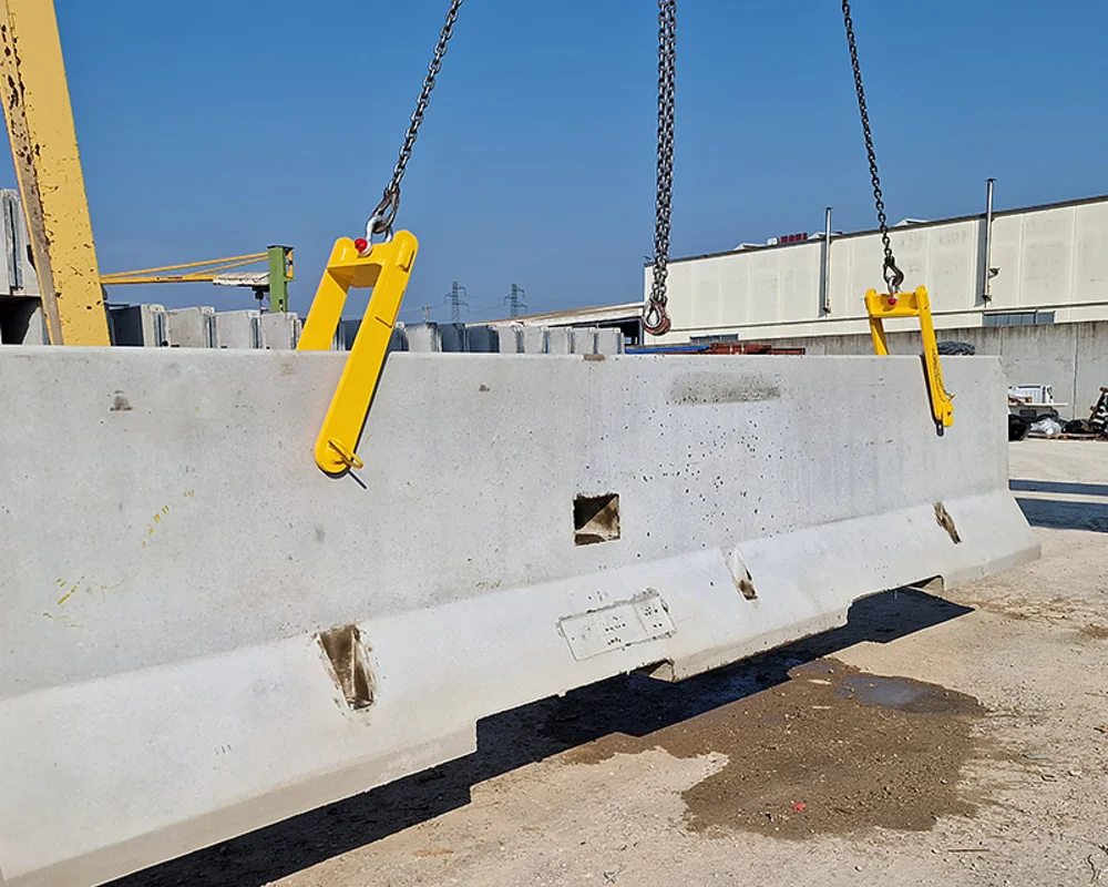 Nuestros soportes están diseñados para permitir el levantamiento eficiente de las barreras New Jersey, utilizando un par de agujeros presentes en las propias barreras.
